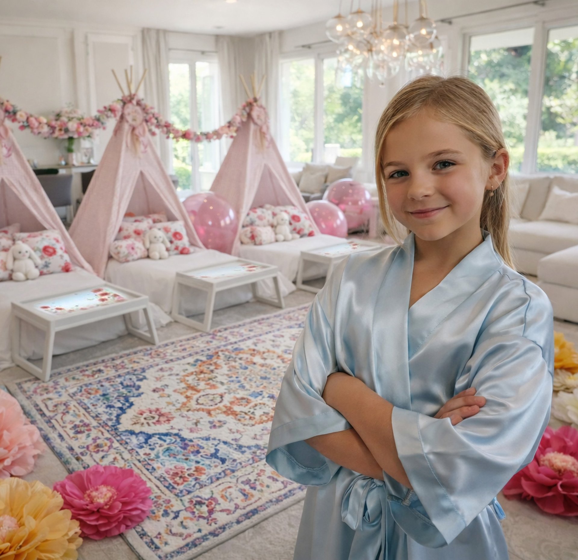 Daarom creëren wij voor kinderen tussen 6 en 13 jaar sfeervolle tipi-slaapfeestjes, luxe spa beleving, gift trees en stijlvolle high tea verjaardagsfeesten — allemaal bij jou thuis. We brengen de sfeer, de materialen, de styling en eventueel catering mee. We bouwen op, richten in en ruimen weer af.